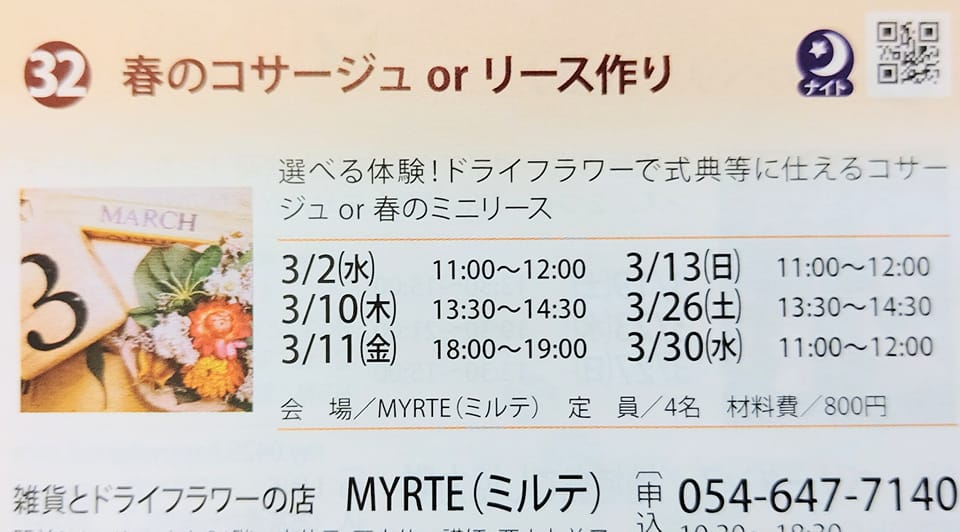 選べる体験!ドライフラワーで式典などに使えるコサージュor春のミニリース