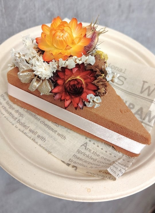 初のアレンジ!ドライフラワーでケーキ風アレンジを作ります。